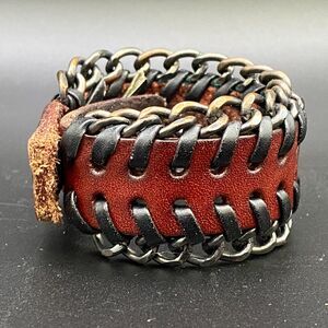 Handcrafted Leather & Chain Bracelet Punk Rock, Gothic, Steampunk Style