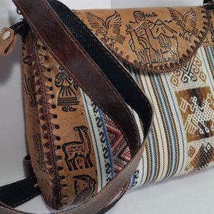 Handcrafted Leather Handbag Aztec Style