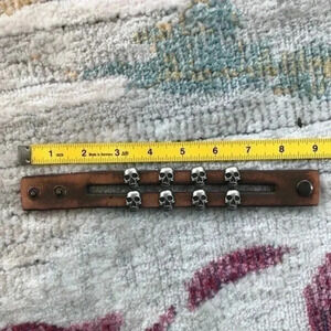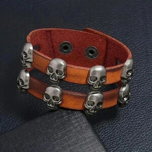 Handcrafted Leather Skulls Celtic Viking Pirate Cuff Snap Brown Bracelet NWT