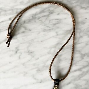 Handcrafted Leather Tassel Necklace with Braided Cord & Brass Eye Charm