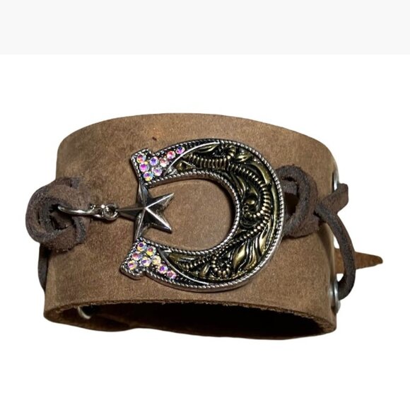 Handcrafted Leather Wrap Bracelet with Decorated Horseshoe Charm Size 7