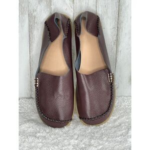 Handcrafted Leather Loafers Moccasins Mahogany Brown Size 40 / 9.5