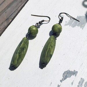 Handcrafted Lightweight Rustic Bronze Metal Mottled Green Acrylic Earrings