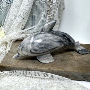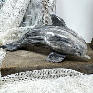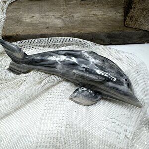 Handcrafted Marble Dolphin Sculpture 9-1/2" by 4-1/2" 2.50 lb