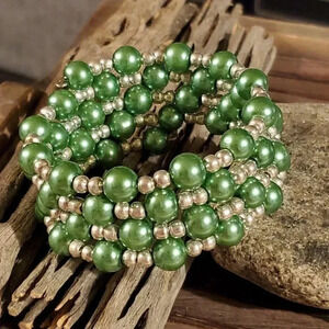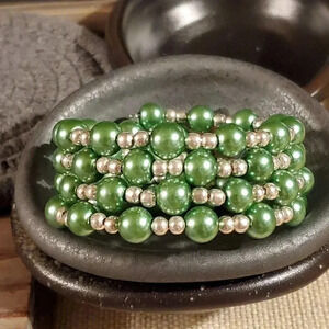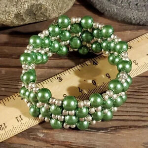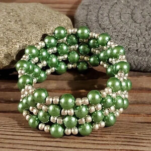 Handcrafted Medium Green Glass Pearl Silver Beads