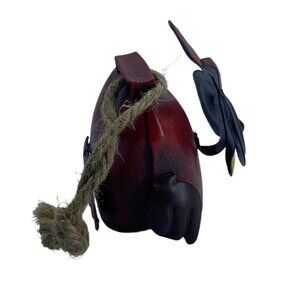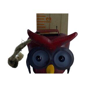 Handcrafted Metal Owl Bell With Rope Hanger Red Black 1.5” Tall Rustic Farm