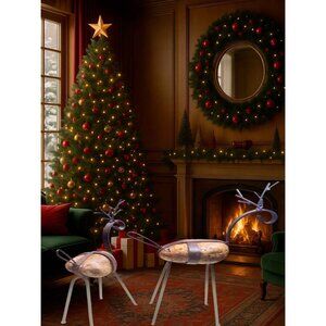 These reindeer figurines blend rustic charm with artistic craftsmanship, featuring natural stone bodies and intricately designed metal antlers. Perfect for holiday ambiance, their unique design evokes warmth and elegance, creating a striking centerpiece or festive accent for seasonal decor. Enhance your Christmas setting with these artful creations.