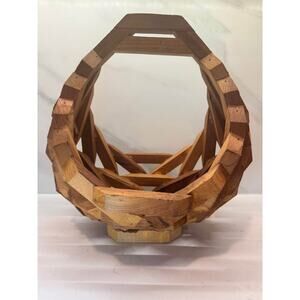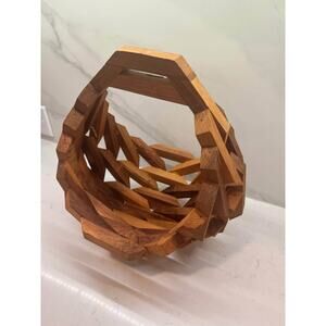 Handcrafted Mid Century Wooden Fruit Display Basket