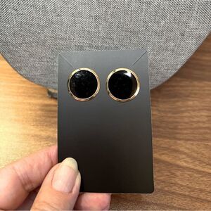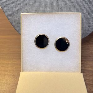 Handcrafted Minimalist Style Circular Gold Tone and Black Disc Pierced Earrings