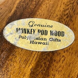 Sticker says “Genuine Monkey Pod Wood Polynesian Gifts Hawaii”