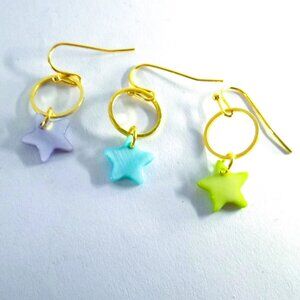 Lime Green Pair of Mother of Pearl Star hanging from a 12 mm alloy Hoop Earrings. The perfect accessory.
