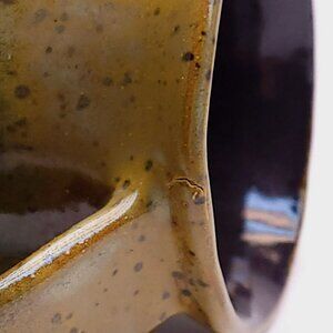 Handcrafted Mug Signed Joan G. Earthy Green Gold & Brown Glaze Finish