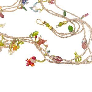 This necklace tells a story of intricate craftsmanship and vibrant colors. Each bead and floral accent is a testament to the beauty found in nature, lovingly recreated to adorn your neck. The delicate chain adds a subtle elegance, making this piece both eye-catching and charming.