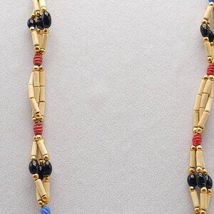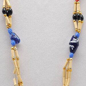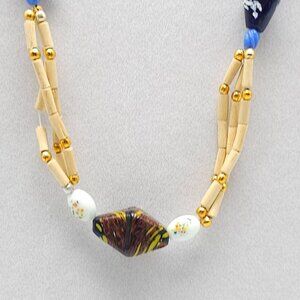 Handcrafted Multicolor Glass Bead Bamboo Necklace With Gold Accents