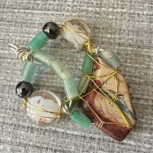 The handcrafted pieces have multiple bead and stone combinations and are combined together by copper wiring.