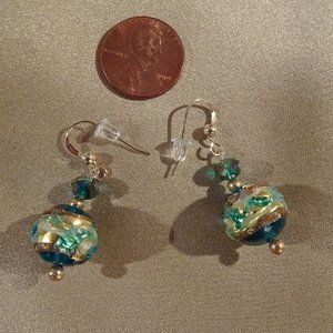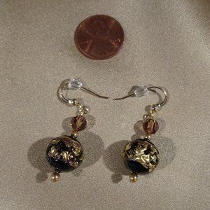 Dodici di Murano - Handmade Murano earrings from 12 mm. beads with external gold lampwork, 5 color options (please specify): Aqua, Black with Amber, Black with Red, Blue, and Siam, earrings with hooks, posts, or leverbacks (please specify).