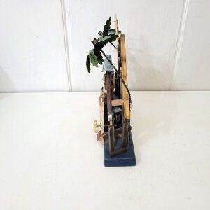 This handcrafted musical wooden nativity scene features intricate details, including a star and palm trees. A beautiful addition to holiday decor.