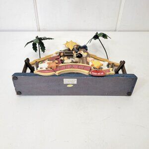 Handcrafted Musical Wooden Nativity Scene With Star & Palm Trees