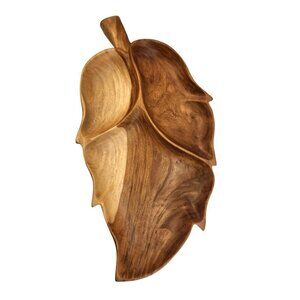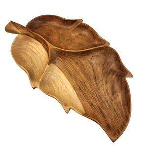 Handcrafted Narra Wood Leaf-Shaped Divided Serving Platter 20 inch long x 11 wid