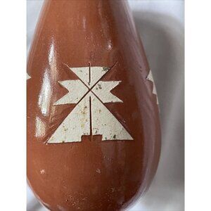 Handcrafted Native American Style Terra Cotta Vase W/ White Geometric Patterns