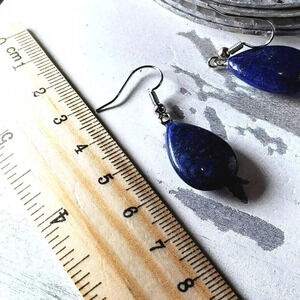 Handcrafted Natural Lapis Lazuli Puffed Teardrop Gemstone Dangle Earrings