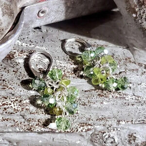 Handcrafted Natural Peridot Gemstone Czech Crystal Beads Silver Plated Earrings