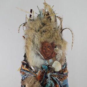 Ever wanted a doll that looks like it could summon rain? Look no further! This handcrafted beauty, complete with feathers, fur, and yarn accents, is the shaman you need.