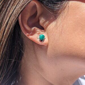 Handcrafted Navajo Turtle Stud Earrings Malachite Stone Native American Jewelry*