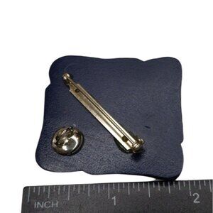 Handcrafted Navy Blue Geometric Pin Brooch W/ Dual Fasteners & Textured Design