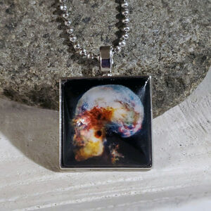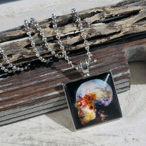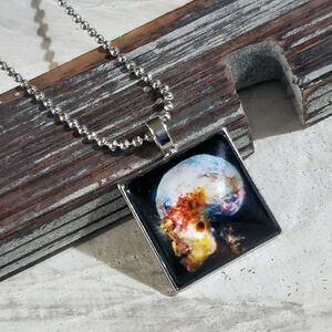 Handcrafted Nebula Skull Square Glass Cabochon Pendant Necklace