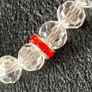 * Colors: Clear glass beads (faceted), ruby-colored rhinestones