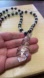 Handcrafted using broken vintage and modern jewelry. This absolutely stunning necklace features a variety of faceted beads in white and oil slick coloring, aurora borealis beads to add even more dimension and if that wasn’t enough also moon glow beads! Focal point features a wire wrapped crystal. Measures 23” overall with a barrel clasp and crystal pendant measures 3”. The amount of detail this piece shows in the light is beyond captivating! One of a kind piece thanks to upcycled materials.