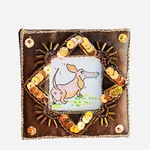Add a touch of whimsy to your home with these handcrafted dachshund illustrations. Featuring vibrant blue, purple, and brown created in alcohol ink, these pieces are perfect for weenie dog owners.