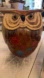 Enhance your home decor with this adorable owl ceramic vase or planter. It could also be used on your kitchen counter to hold utensils. Featuring a charming design in brown, rust and blue, this piece adds a touch of whimsy to any room. Perfect for displaying flowers or as a standalone art piece.
