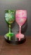 Must have for Wicked Fans ….Featuring Elphaba Enchanted and Gorgeously Glinda Glasses..Pair of “Wickedly Good” Hand Crafted Wine Glasses. You get 2 large wine glasses that I have handcrafted with an epoxy, alcohol inks, micas and glitters. Each glass is unique …no two are the same. The glasses are real glass 9 inches tall, 11.5 around widest part and 5 inch deep so it’s a good size glass.