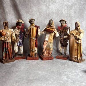 Handcrafted Paper Mache Mexican Folk Art Figurines Set Of 6 Made In Mexico READ