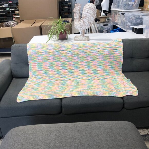 Handcrafted Pastel Multicolor Crocheted Throw Baby Blanket 45 x 32 inch