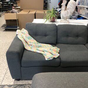 This crocheted blanket exudes an inviting, cozy charm with its pastel hues. Each stitch is meticulously crafted, offering both warmth and a gentle aesthetic. Draped over a couch or used as a snuggly wrap, it brings a touch of comfort and artisan flair to any living space.