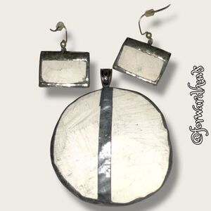 - Measurements: Pendant: 2” x 2” plus hanger Earrings 3/4” x 1” plus fishhooks