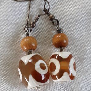 Handcrafted Pierced Earrings Tribal Look Mixed Medium