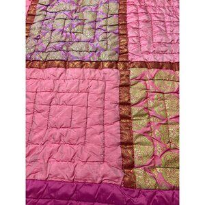 Handcrafted Pink & Gold Patchwork Quilt 43x43 Inches