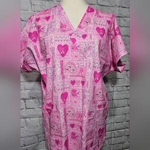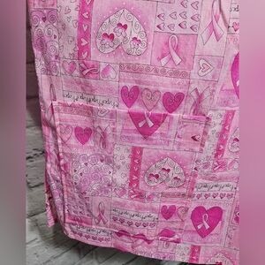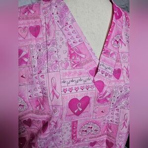 Handcrafted Pink Ribbon Pattern Scrub Top