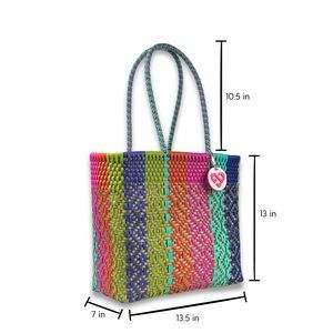 Tote Handbag; Gold With Pinks, Orange, Royal Blue, Mint, Green and Purple; Medium