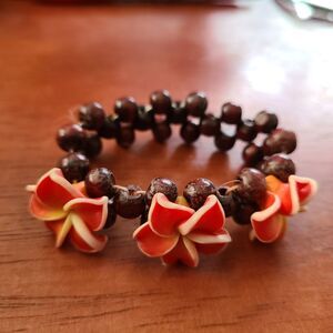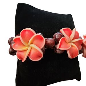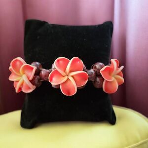 Handcrafted Plumeria Flower Stretch Bracelet - Tropical Beachy Boho Chic J2-C2