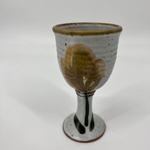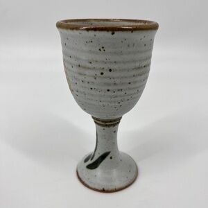 Handcrafted Pottery Goblet Cup/Chalice with Glazed Speckled Art Stone 7" Flower
