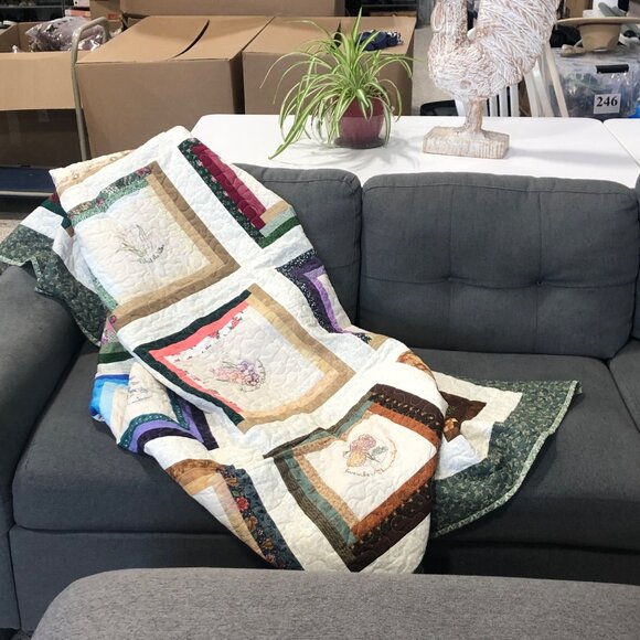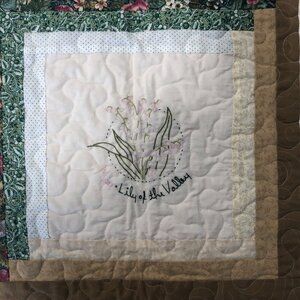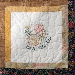 Handcrafted Quilt Flower of the Month Embroidery Patchwork Design Meander 70x55