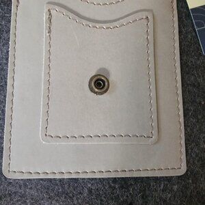 The front is felt and leather, the back is grey leather and the interior is felt lined.