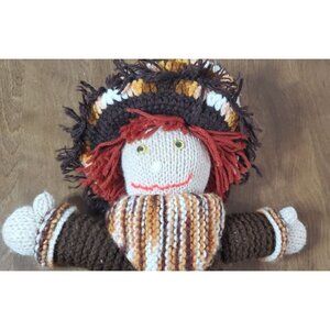 This doll has a flair for fashion with her snazzy striped scarf and hat. She’s ready to jazz up any room with her whimsical charm and quirky style.