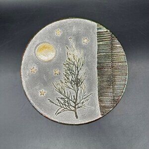 Handcrafted Raku Pottery Moon Tree Trinket Dish Tray Joyce Furney Clay Cellar