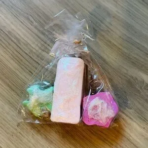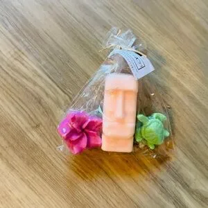 Indulge in a luxurious bath experience with this handcrafted soap set. Featuring a soothing cream bar, a vibrant pink flower, and a refreshing green turtle, this set is perfect for pampering yourself or gifting to a loved one.
